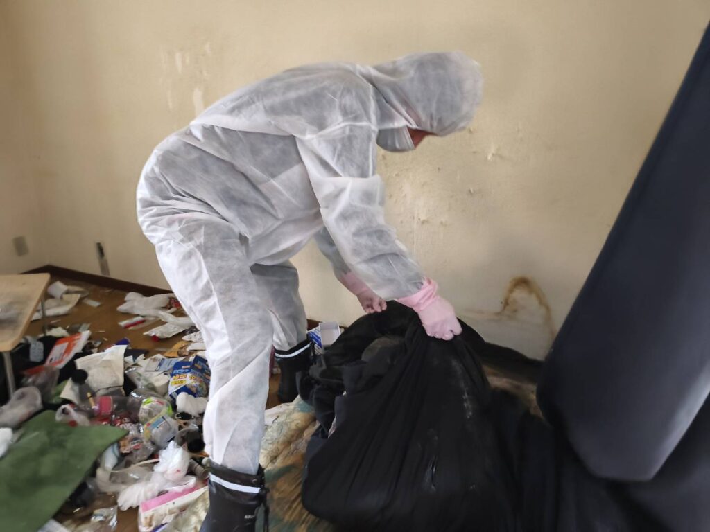 一気に遂行するのは不可能であった為、緊急対応で汚染物の撤去(汚れた布団やマットレス等)や